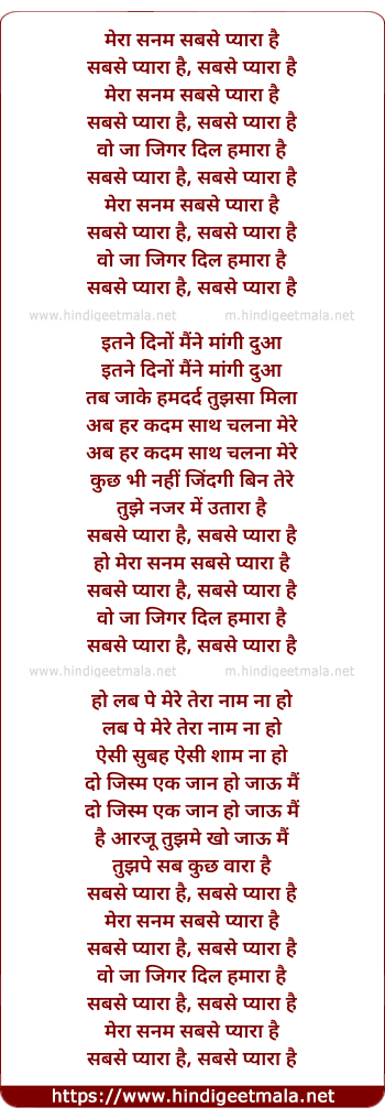 Lyrics of Mera Sanam Sabse Pyara Hai - मेरा सनम सबसे प्यारा है
