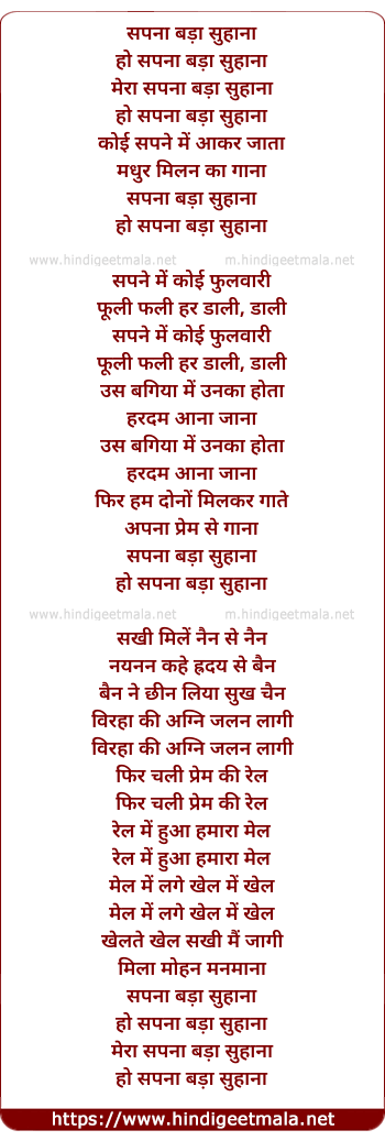 Lyrics of Mera Swapn Bada Suhana - सपना बड़ा सुहाना