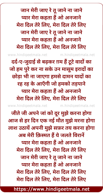 Lyrics of Meraa Dil Tere Liye - मेरा दिल तेरे लिए