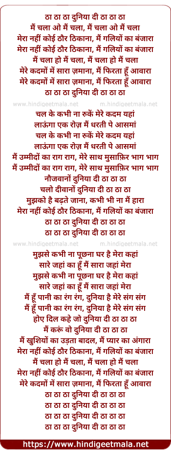 Lyrics of Mera Nahee Koyee Thaur Thikana - मेरा नहीं कोई ठौर ठिकाना