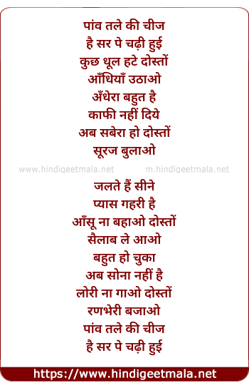 Lyrics of Mere Bhai Ki Ek Kavita - पांव तले की चीज