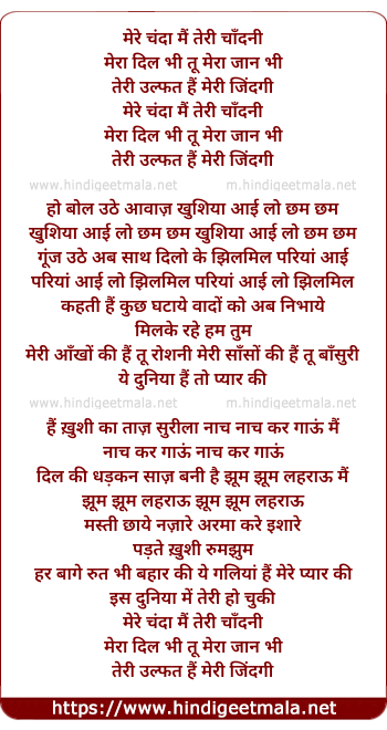 Lyrics of Mere Chanda Mai Teri Chandni - मेरे चंदा मैं तेरी चांदनी