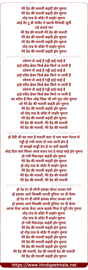 Lyrics of Mere Dad Ki Maruti - मेरे डैड की मारुती