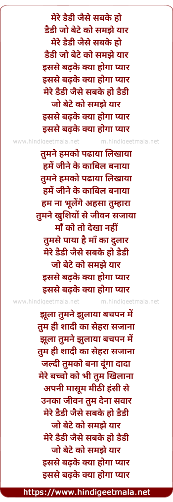 Lyrics of Mere Daddy Jaise - मेरे डैडी जैसे
