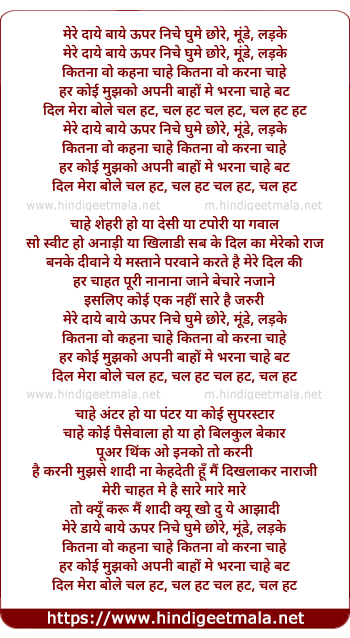 Lyrics of Mere Dayein Bayein Upar Neeche Ghume - मेरे दाये बाये ऊपर निचे घुमे