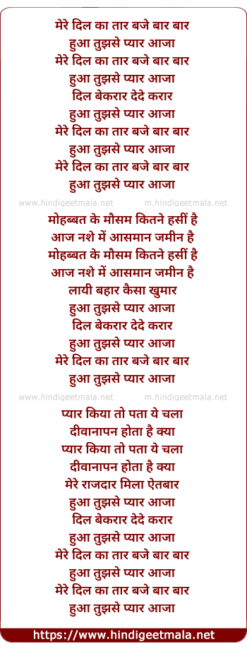 Lyrics of Mere Dil Ka Taar Baje Baar Baar - मेरे दिल का तार बजे बार बार