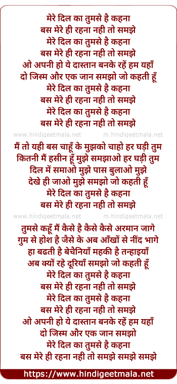 Lyrics of Mere Dil Kaa Tumse Hai Kehna - मेरे दिल का तुमसे है कहना