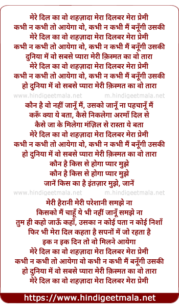 Lyrics of Mere Dil Ka Wo Shehjada - मेरे दिल का वो शहज़ादा