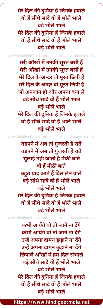 Lyrics of Mere Dil Ki Duniya Hai Jinke Hawale - मेरे दिल की दुनिया हैं जिनके हवाले