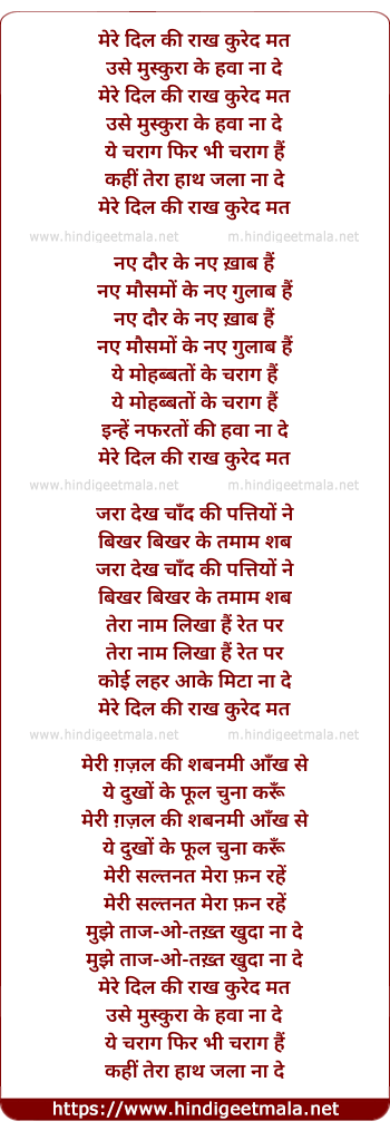 Lyrics of Mere Dil Ki Raakh - मेरे दिल की राख कुरेद मत