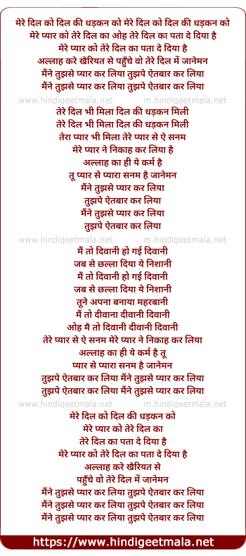 Lyrics of Mere Dil Ko Dil Ki Dhadkan Ko - मेरे दिल को दिल की धड़कन को