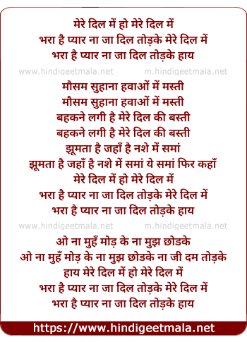 Lyrics of Mere Dil Me Bhara Hai Pyar - मेरे दिल में बहार है प्यार
