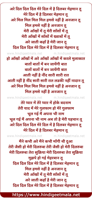 are dil dil dil mere dil me hai dilbar mehman tu