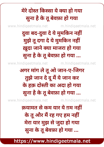 Lyrics of Mere Dost Kissa Yeh Kya Ho Gaya - मेरे दोस्त किस्सा ये क्या हो गया
