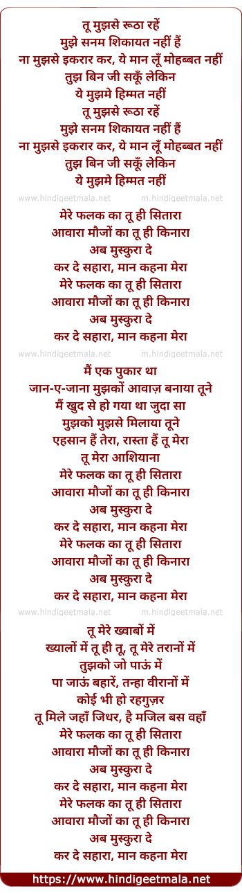 Lyrics of Mere Falak Kaa Tu Hi Sitara - मेरे फलक का तू ही सितारा