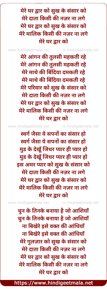 Lyrics of Mere Ghar Dwaar Ko Sukh Ke Sansaar Ko - मेरे घर द्वार को सुख के संसार को