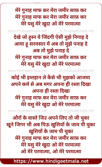 Lyrics of Mere Gunaah Maaf Kar Mera Zamir Saaf Kar - मेरे गुनाह माफ कर मेरा जमीर साफ़ कर