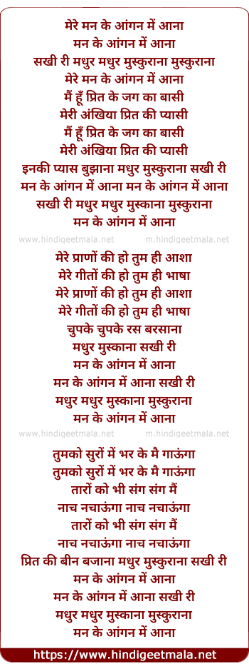 Lyrics of Mere Man Ke Aangan Me Aana - मेरे मन के आंगन में आना