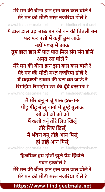 Lyrics of Mere Man Ki Beena - मेरे मन की बीना झन झन कल कल बोले रे