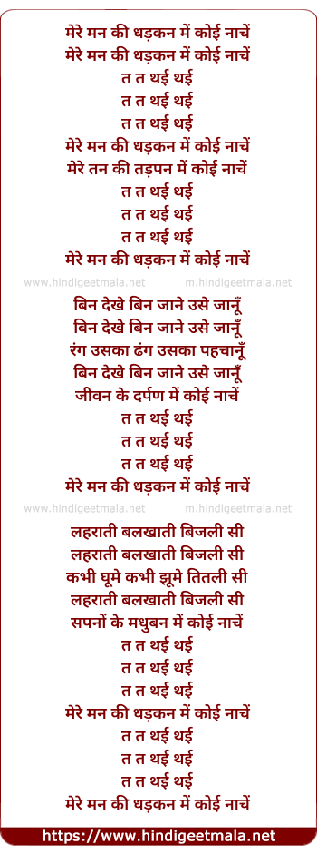 Lyrics of Mere Man Ki Dhadkan Me Koi Nache - मेरे मन की धड़कन में कोई नाचें