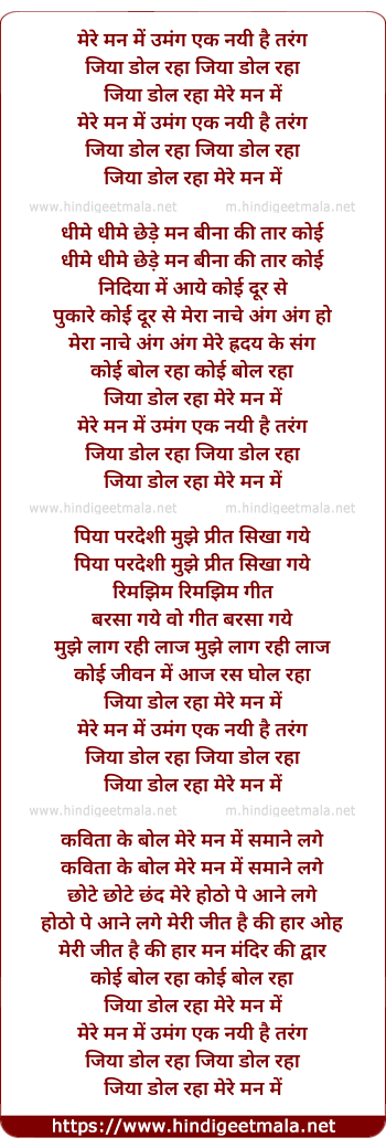 Lyrics of Mere Mann Me Umang Ek Nayi Tarang