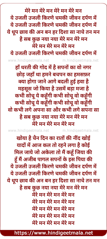 Lyrics of Mere Mann Mere Mann - मेरे मन मेरे मन