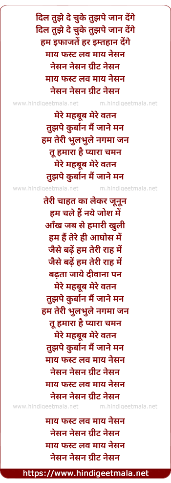 Lyrics of Mere Mehboob Mere Watan - मेरे महबूब मेरे वतन