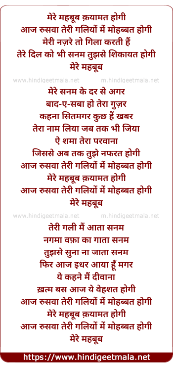 Lyrics of Mere Mehboob Qayamat Hogi - मेरे महबूब क़यामत होगी