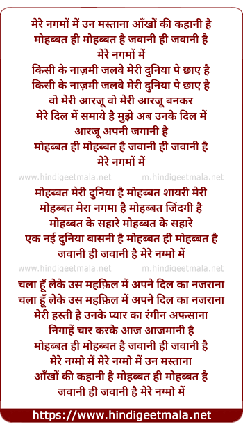 Lyrics of Mere Naghmo Me Un Mastana - मेरे नगमों में उन मस्ताना