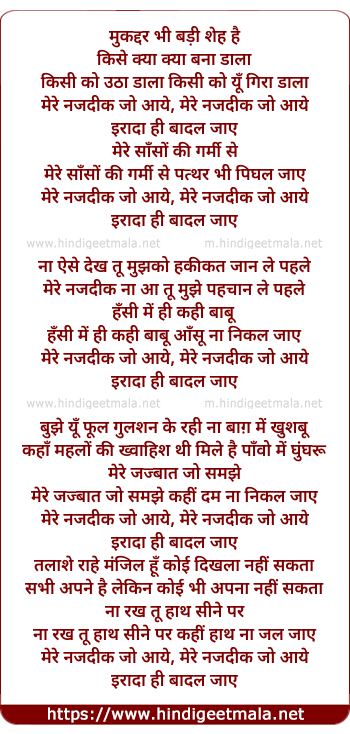 Lyrics of Mere Nazdeek Jo Aaye - मेरे नजदीक जो आये