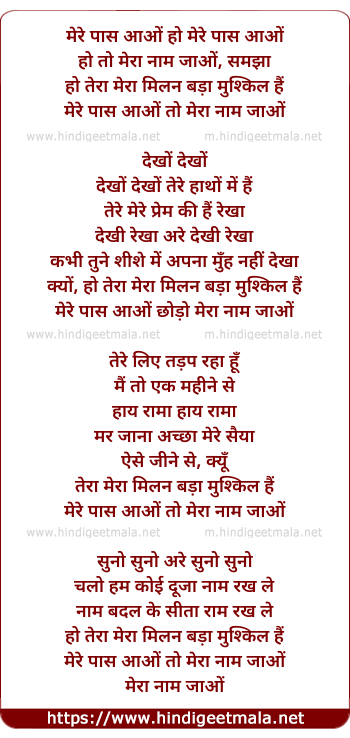 Lyrics of Mere Paas Aao, To Mera Naam Jao - मेरे पास आओं , तो मेरा नाम जाओं
