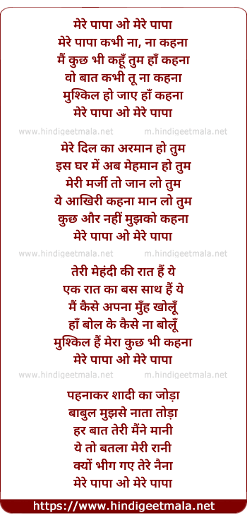 Lyrics of Mere Papa (Sad) - मेरे पापा ओ मेरे पापा