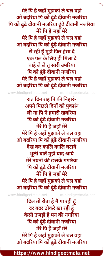 Lyrics of Mere Pi Hai Jahan - मेरे पि है जहाँ