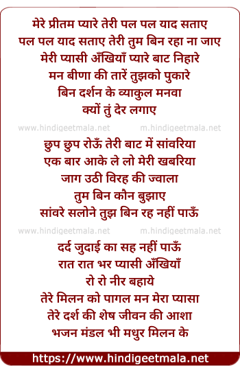 Lyrics of Mere Preetam Pyaare - मेरे प्रीतम प्यारे