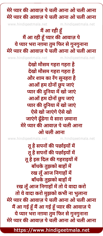 Lyrics of Mere Pyaar Ki Aavaaz Pe Chali Aana - मेरे प्यार की आवाज़ पे चली आना