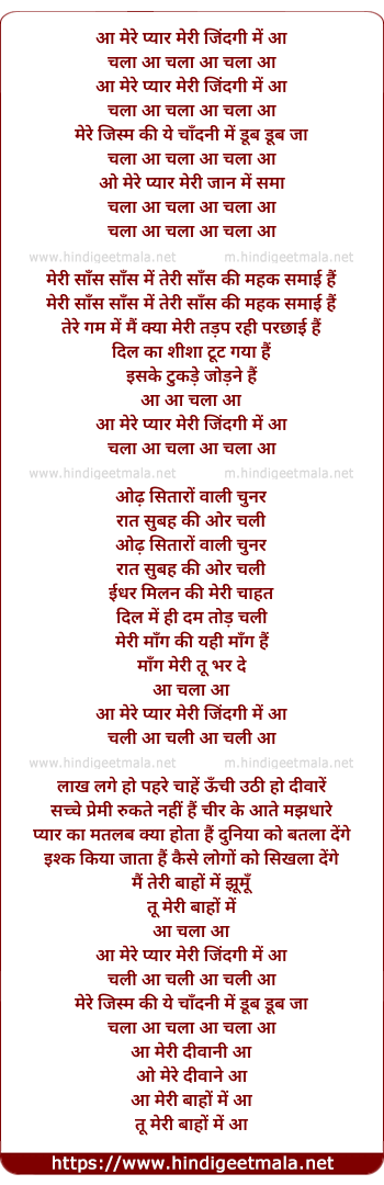 Lyrics of Mere Pyar Meri Zindagi - मेरे प्यार मेरी जिंदगी