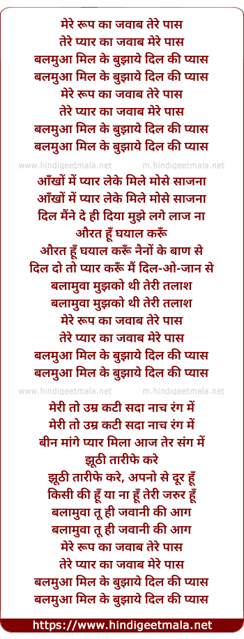 Lyrics of Mere Roop Ka Jawab Tere Paas - मेरे रूप का जवाब तेरे पास