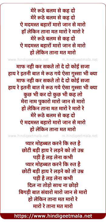 Lyrics of Mere Roothe Balam Se Kah Do - मेरे रूठे बलम से कह दो
