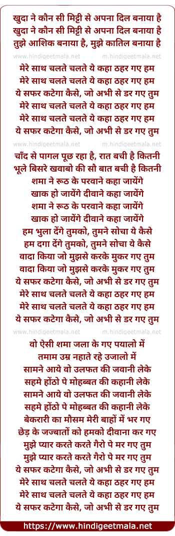 Lyrics of Mere Saath Chalte Chalte - मेरे साथ चलते चलते