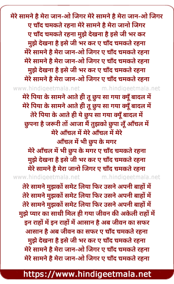 Lyrics of Mere Samne Hai Mera Jaan-O Jigar - मेरे सामने है मेरा जान-ओ जिगर