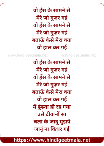 Lyrics of Mere Samne Se Wo - वो हँस के सामने से