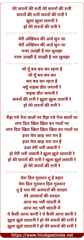 Lyrics of Mere Sapno Ki Rani Re - मेरे सपनों की रानी मेरे सपनों की रानी