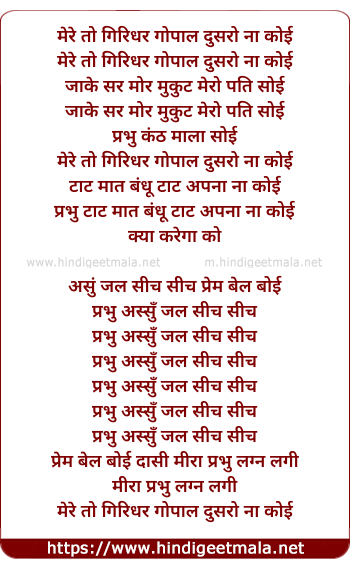 Lyrics of Mere To Giridhar Gopal Dusaro Na Koi - मेरे तो गिरिधर गोपाल दुसरो ना कोई