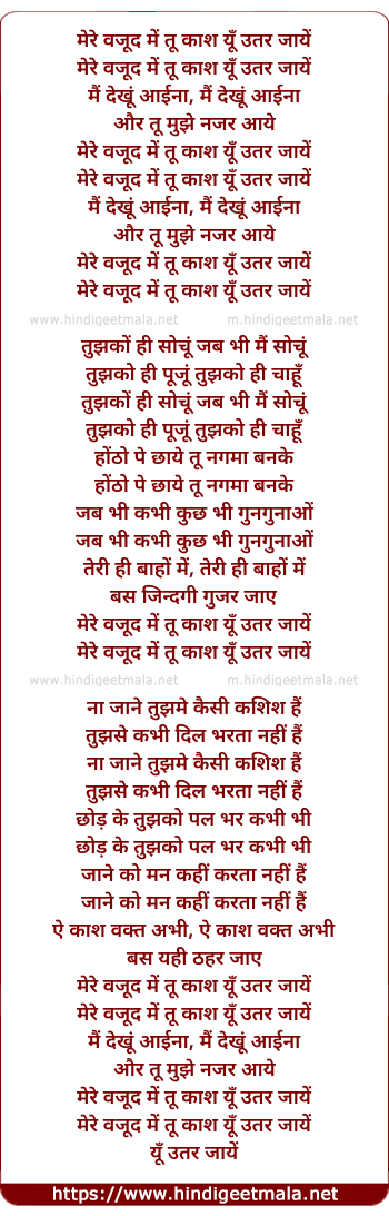Lyrics of Mere Wajud Me Too Kaash Yu Utar Jaaye - मेरे वजूद में तू काश यूँ उतर जायें