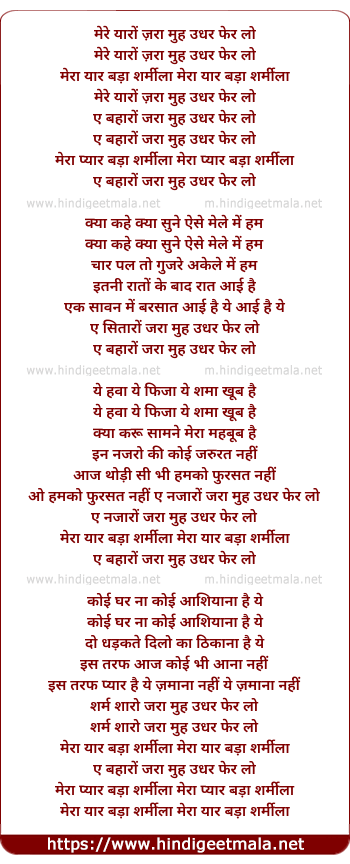 Lyrics of Mere Yaro Zara Muh Udhar Pher Lo - मेरे यारों ज़रा मुँह उधर फेर लो