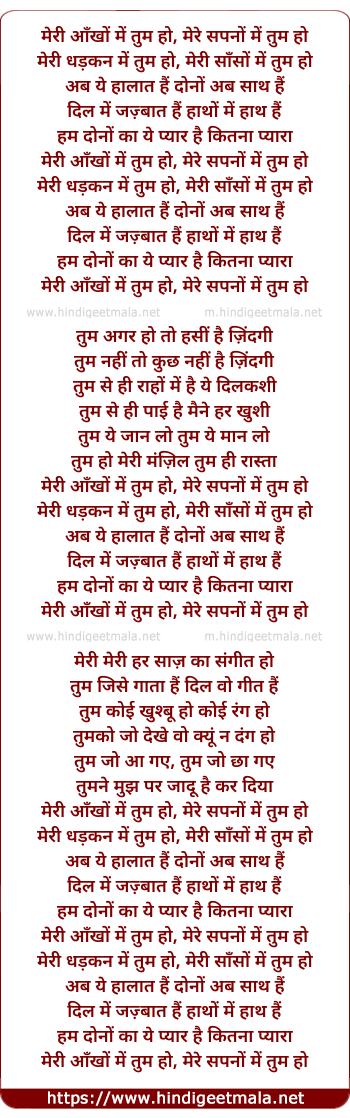 Lyrics of Meree Aankho Me Tum Ho - मेरी आँखों में तुम हो