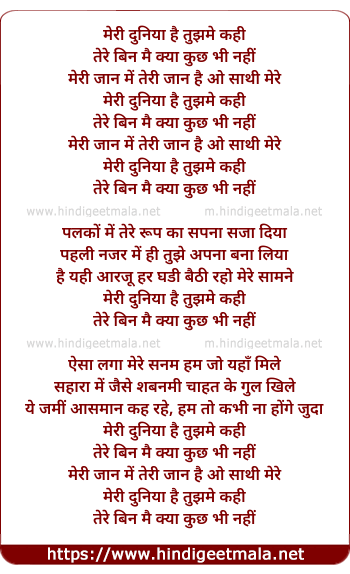 Lyrics of Meree Duniya Hai Tujhame Kahee - मेरी दुनिया है तुझमे कही
