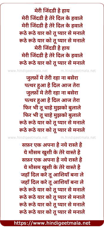 Lyrics of Meree Jindadee Hai Tere Dil Ke Hawale - मेरी जिंदडी है तेरे दिल के हवाले