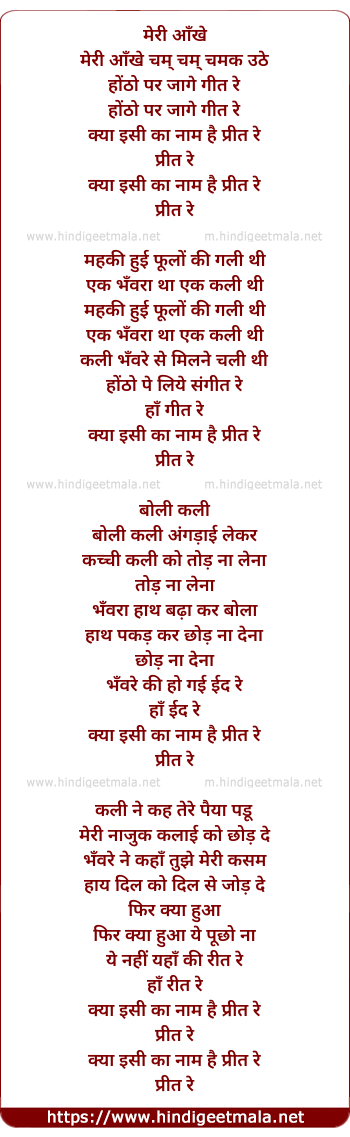 Lyrics of Meri Aanke Chham Chham - मेरी आँखे