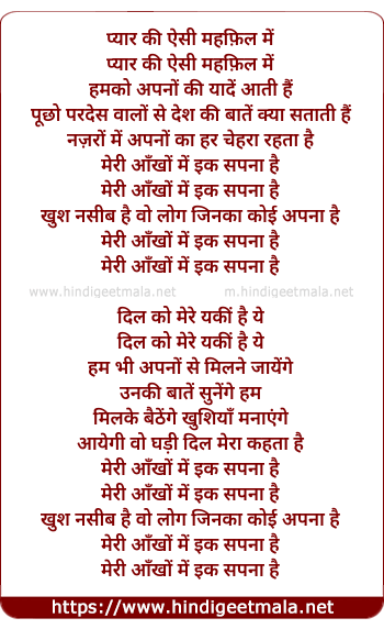 Lyrics of Meri Aankho Me Ek Sapna Hai - मेरी आँखों में एक सपना है